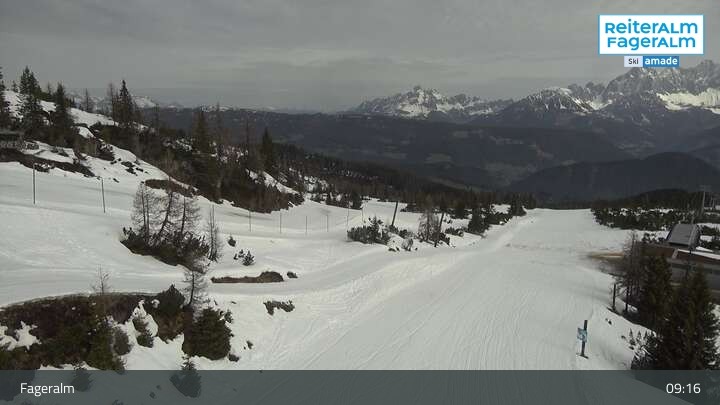 Archiviertes Webcam Bild: Fageralm: Panoramablick Skigebiet am 12.04.2026 um 09:58 Uhr 09:00