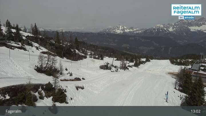 Archiviertes Webcam Bild: Fageralm: Panoramablick Skigebiet am 12.04.2026 um 13:58 Uhr 13:00