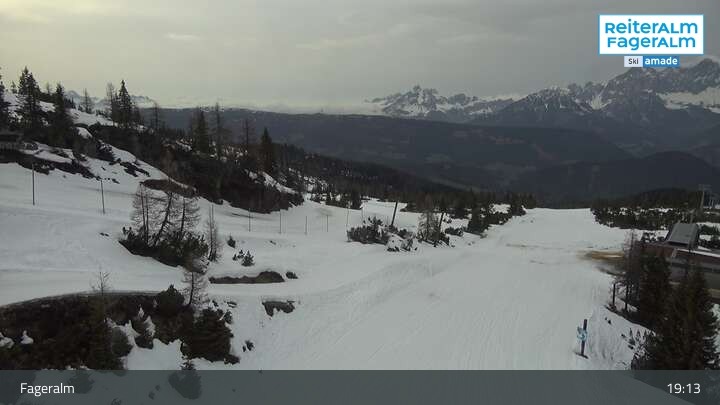 Archiviertes Webcam Bild: Fageralm: Panoramablick Skigebiet am 12.04.2026 um 19:58 Uhr Aktuell
