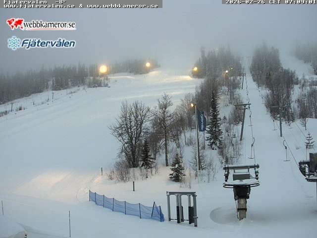Archiviertes Webcam Bild: Skigebiet Fjätervalen am 26 Feb 2026 um 08:22 Uhr 07:00