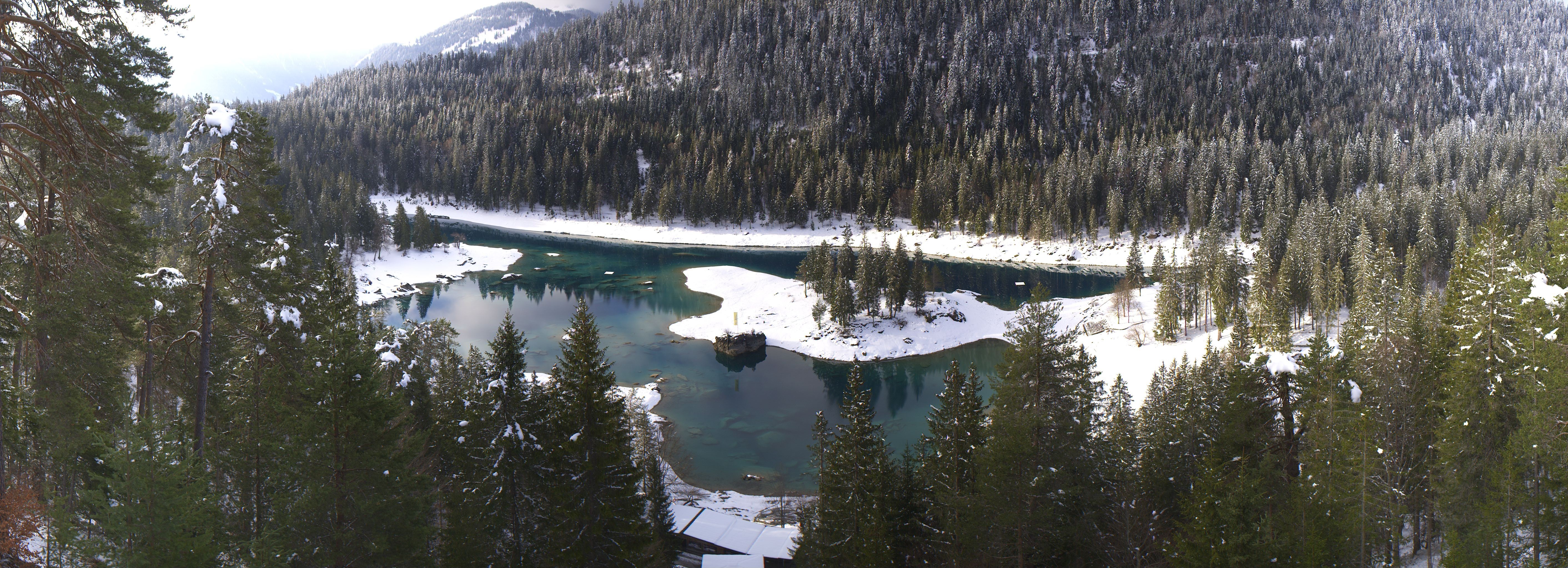 Der türkisgrüne Caumasee, auch Lag la Cauma genannt, liegt im Süden von Flims Waldhaus im Skigebiet Laax.