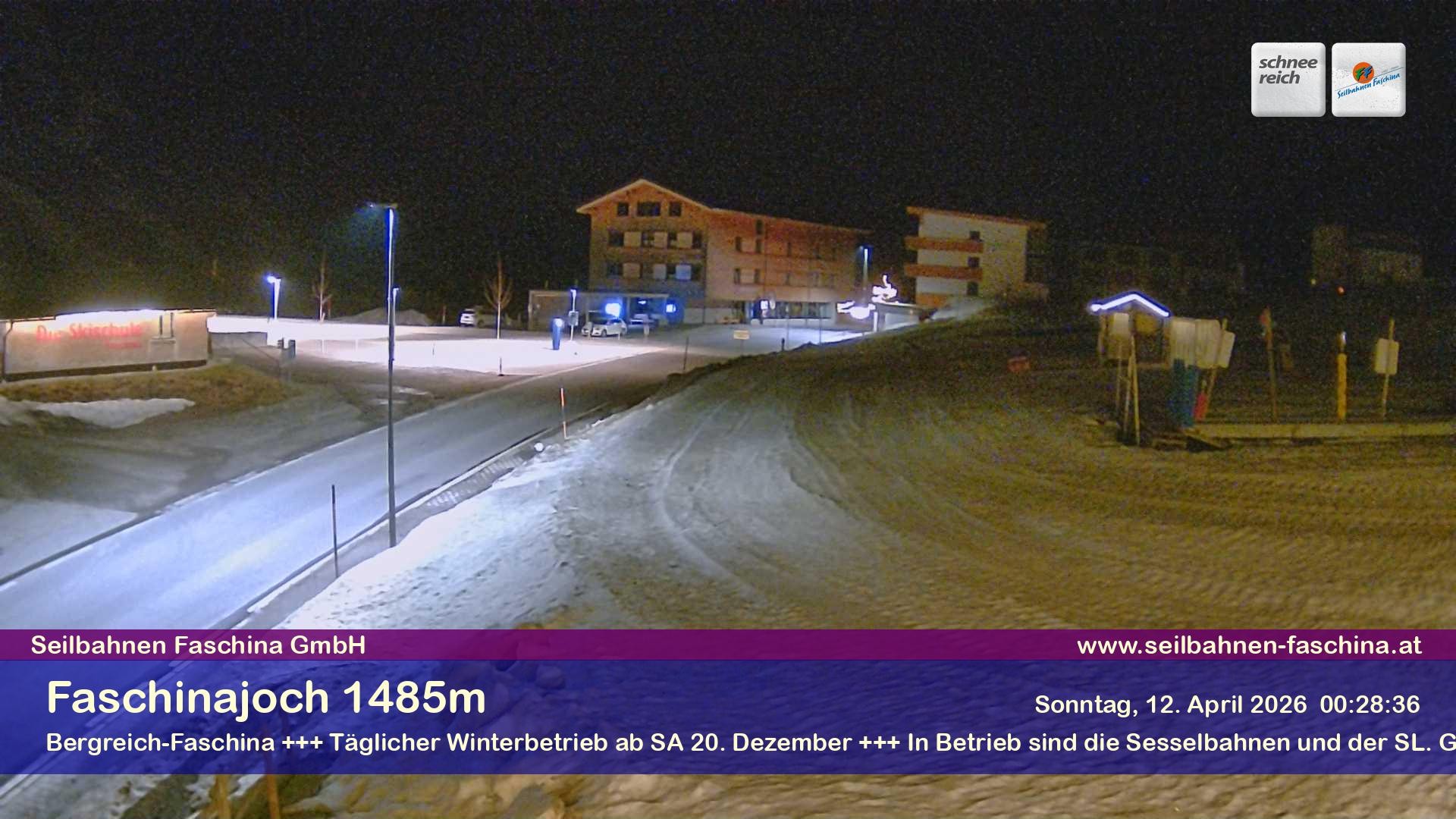 Archiviertes Webcam Bild: Faschina Pass, Talstation Stafelalpbahn am 12.04.2026 um 02:54 Uhr 02:00