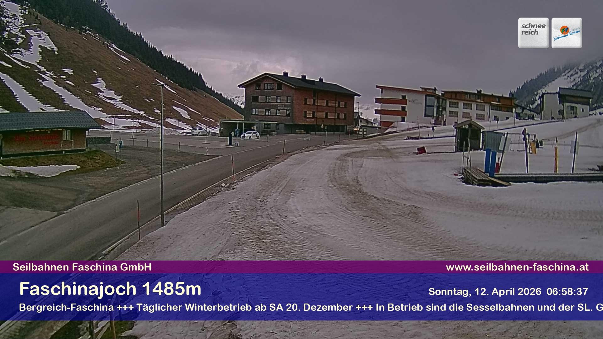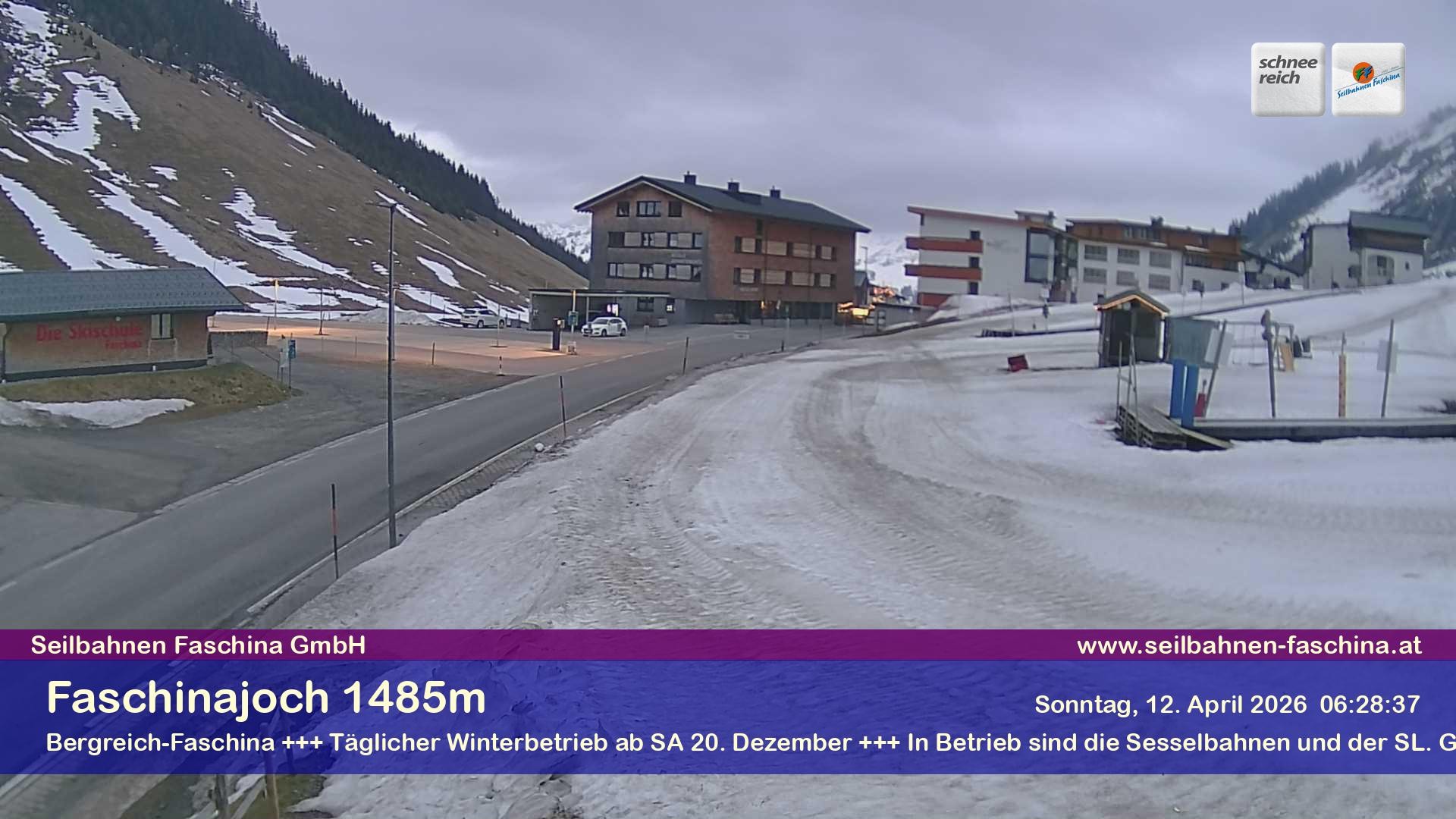 Archiviertes Webcam Bild: Faschina Pass, Talstation Stafelalpbahn am 12.04.2026 um 07:54 Uhr 07:00