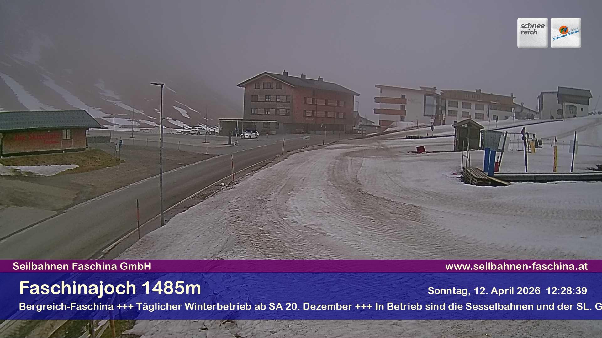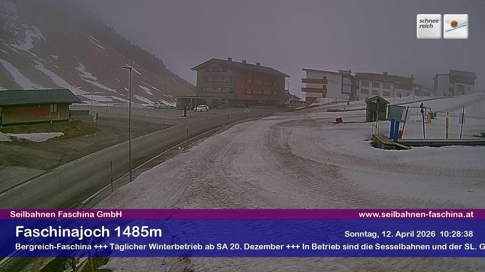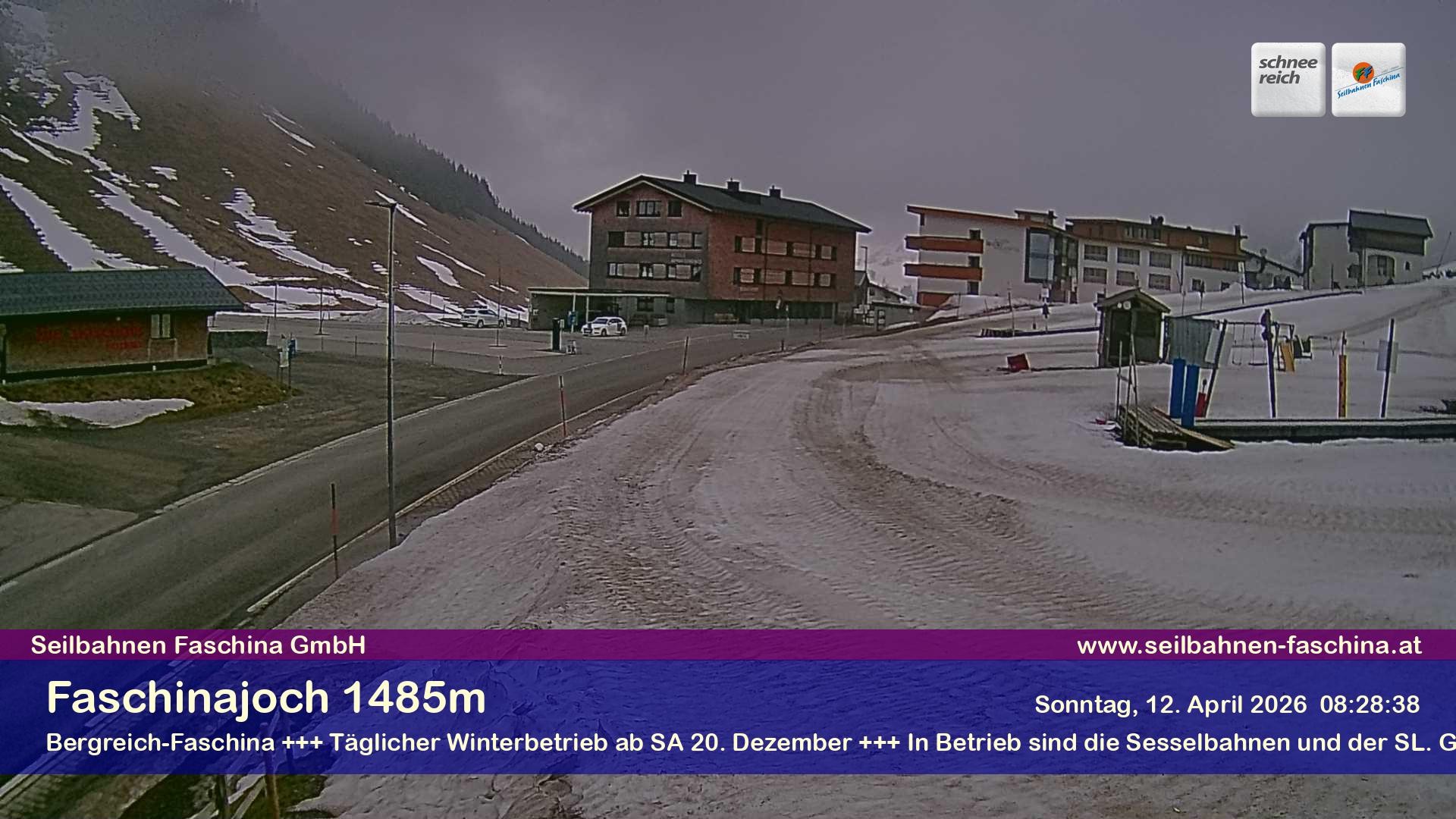 Archiviertes Webcam Bild: Faschina Pass, Talstation Stafelalpbahn am 12.04.2026 um 08:54 Uhr 08:00