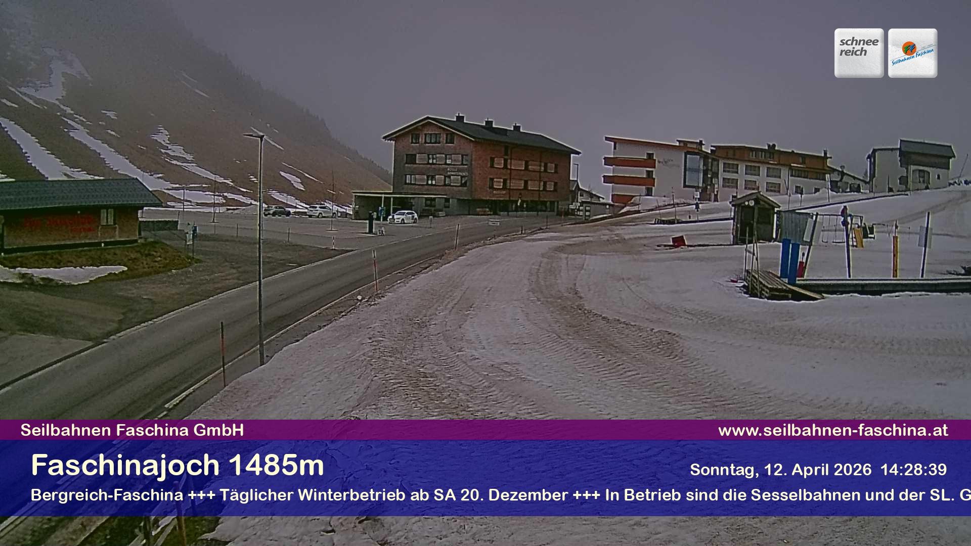 Archiviertes Webcam Bild: Faschina Pass, Talstation Stafelalpbahn am 12.04.2026 um 14:54 Uhr 14:00