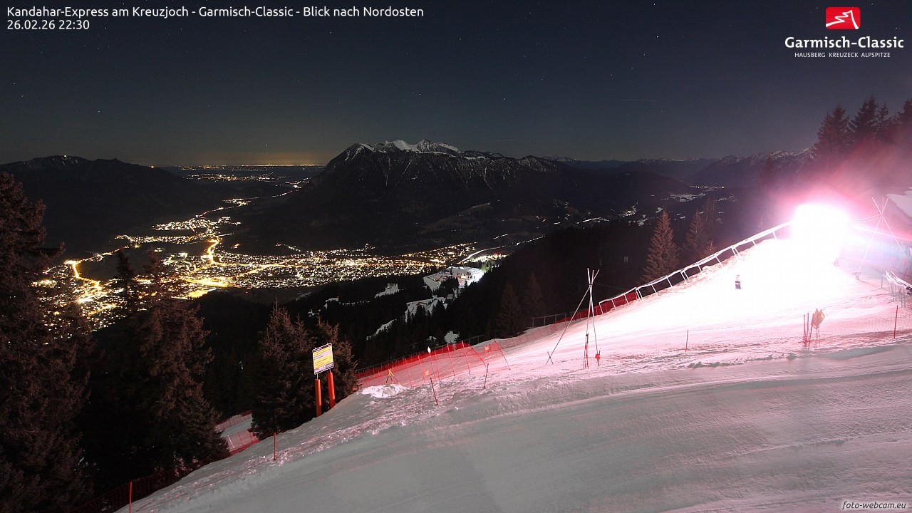 Die Webcam befindet sich an der Bergstation des Kandahar Express am Kreuzjoch im Skigebiet Garmisch-Classic.