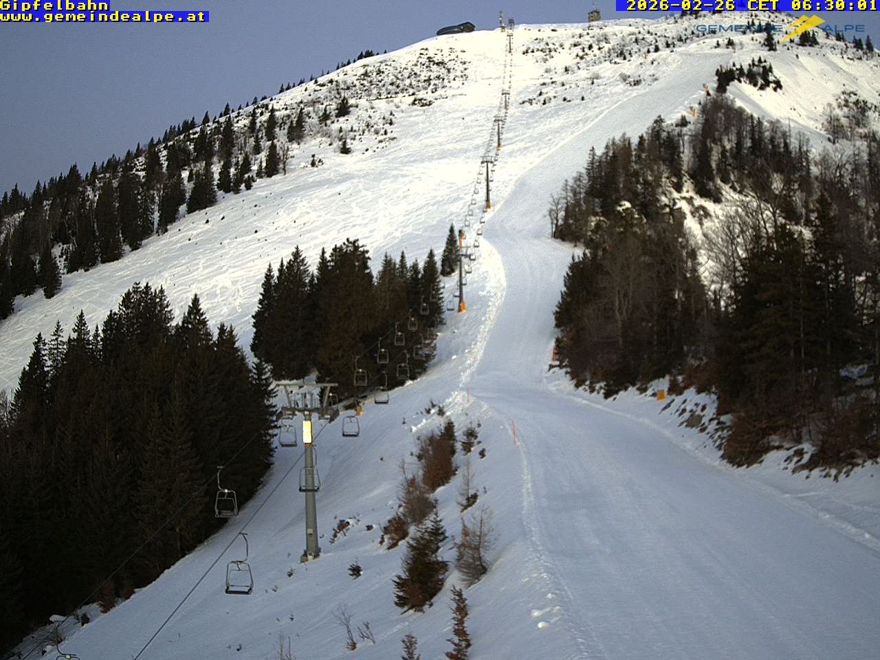 Archiviertes Webcam Bild: Gemeindealpe Sesselbahn zum Gipfel am 26 Feb 2026 um 06:21 Uhr 05:00