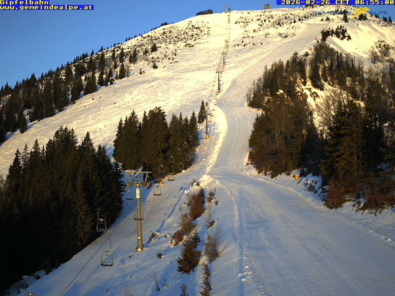 Archiviertes Webcam Bild: Gemeindealpe Sesselbahn zum Gipfel am 26 Feb 2026 um 07:21 Uhr 06:00