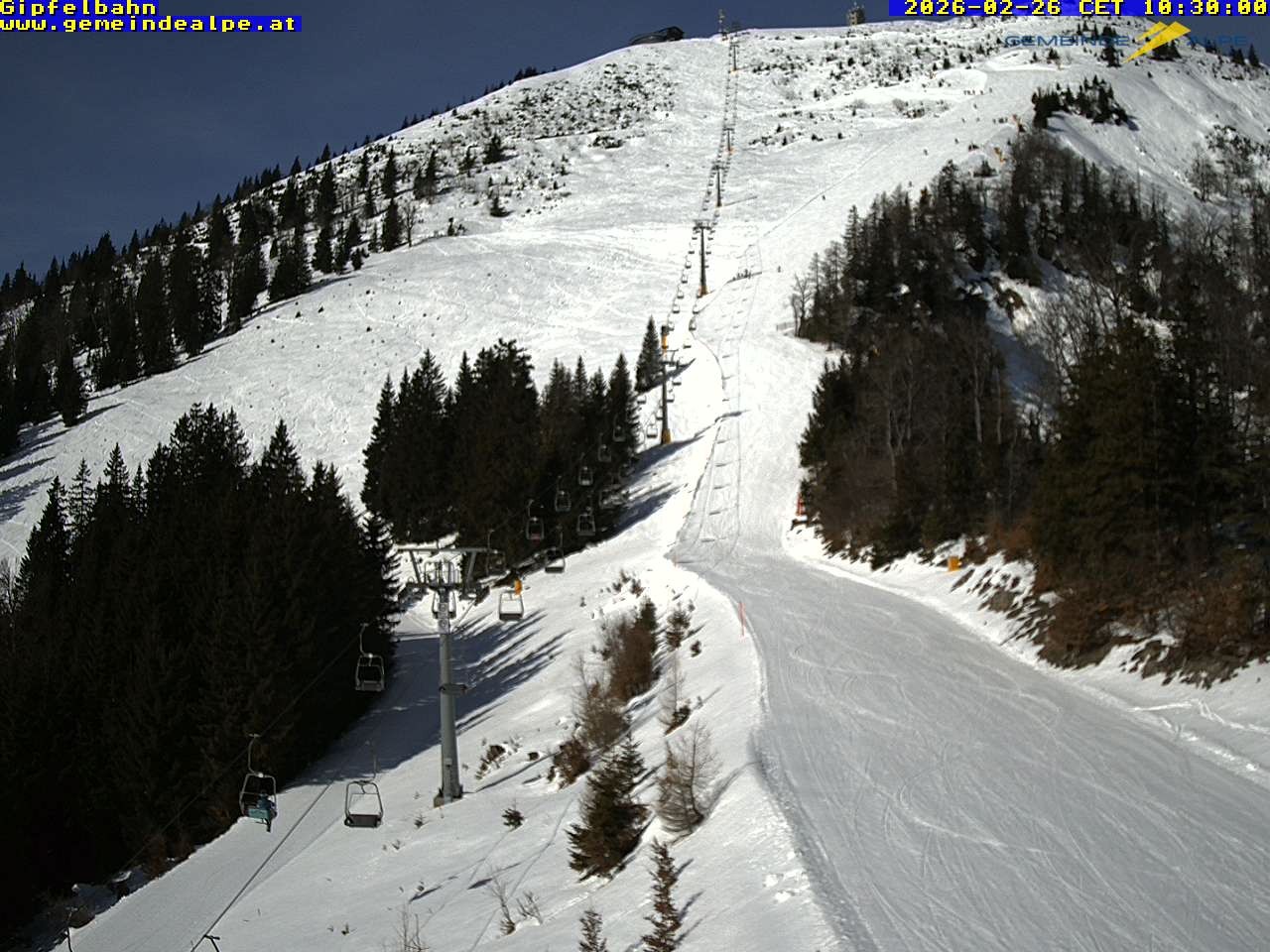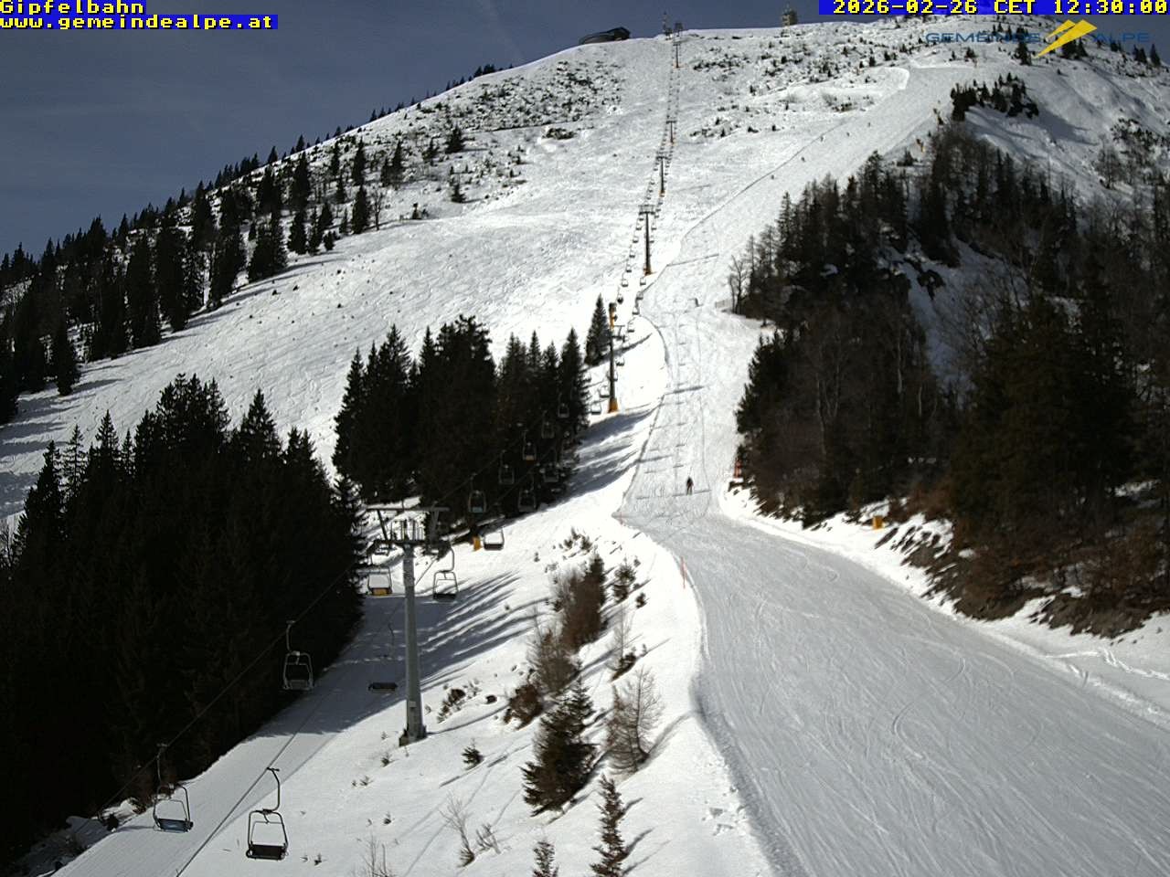 Archiviertes Webcam Bild: Gemeindealpe Sesselbahn zum Gipfel am 26 Feb 2026 um 12:21 Uhr 11:00