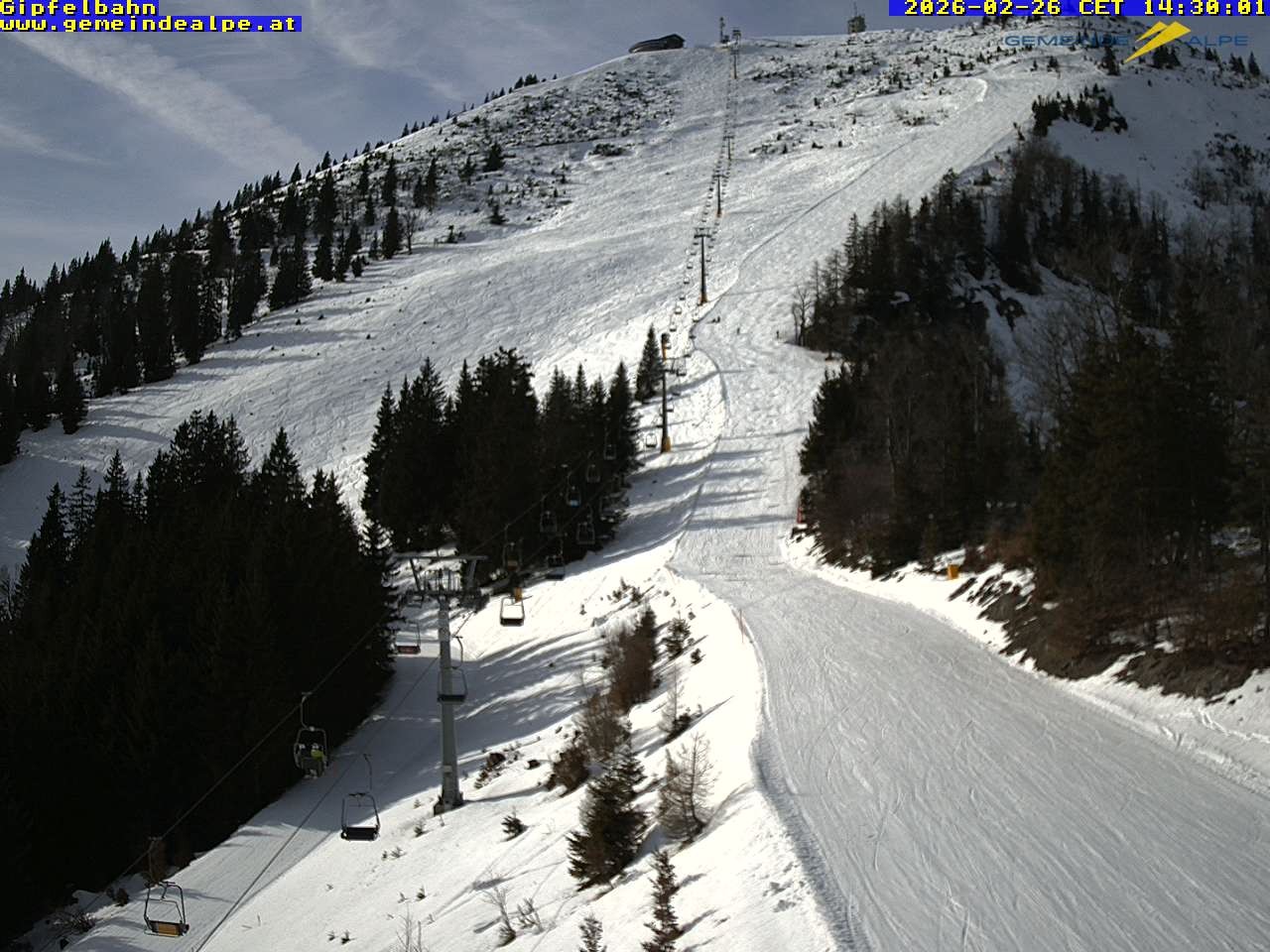 Archiviertes Webcam Bild: Gemeindealpe Sesselbahn zum Gipfel am 26 Feb 2026 um 14:21 Uhr 13:00