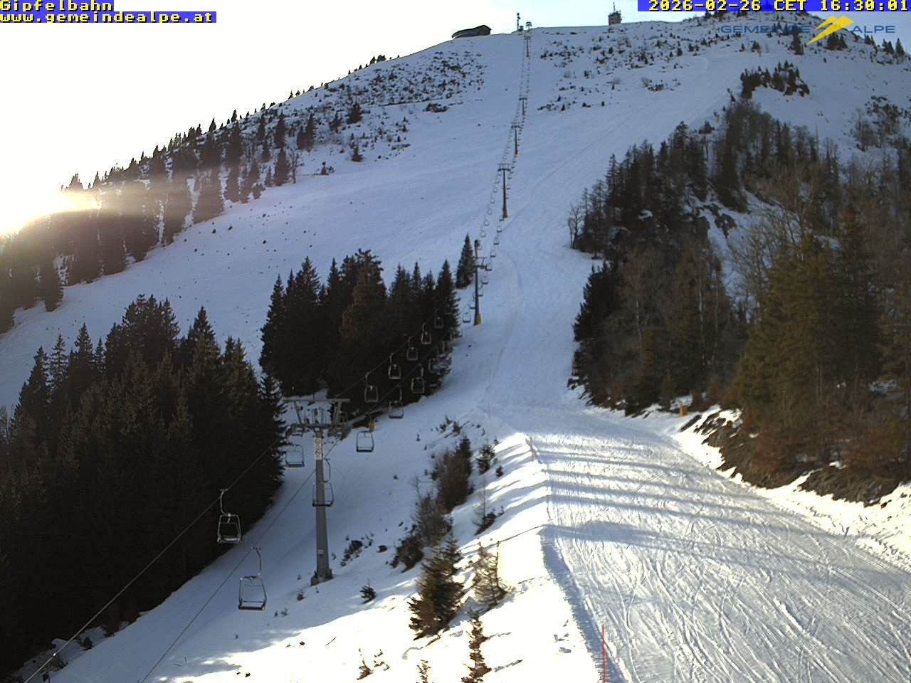 Archiviertes Webcam Bild: Gemeindealpe Sesselbahn zum Gipfel am 26 Feb 2026 um 16:21 Uhr Aktuell