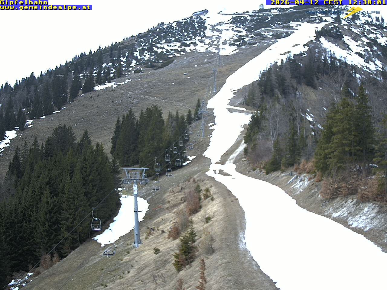 Archiviertes Webcam Bild: Gemeindealpe Sesselbahn zum Gipfel am 12.04.2026 um 12:09 Uhr 12:00