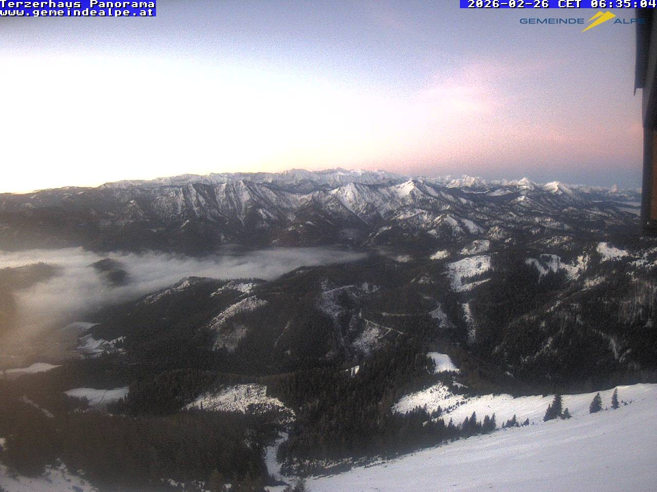 Archiviertes Webcam Bild: Skigebiet Gemeindealpe Mitterbach Panorama Terzerhaus am 26 Feb 2026 um 06:31 Uhr 05:00