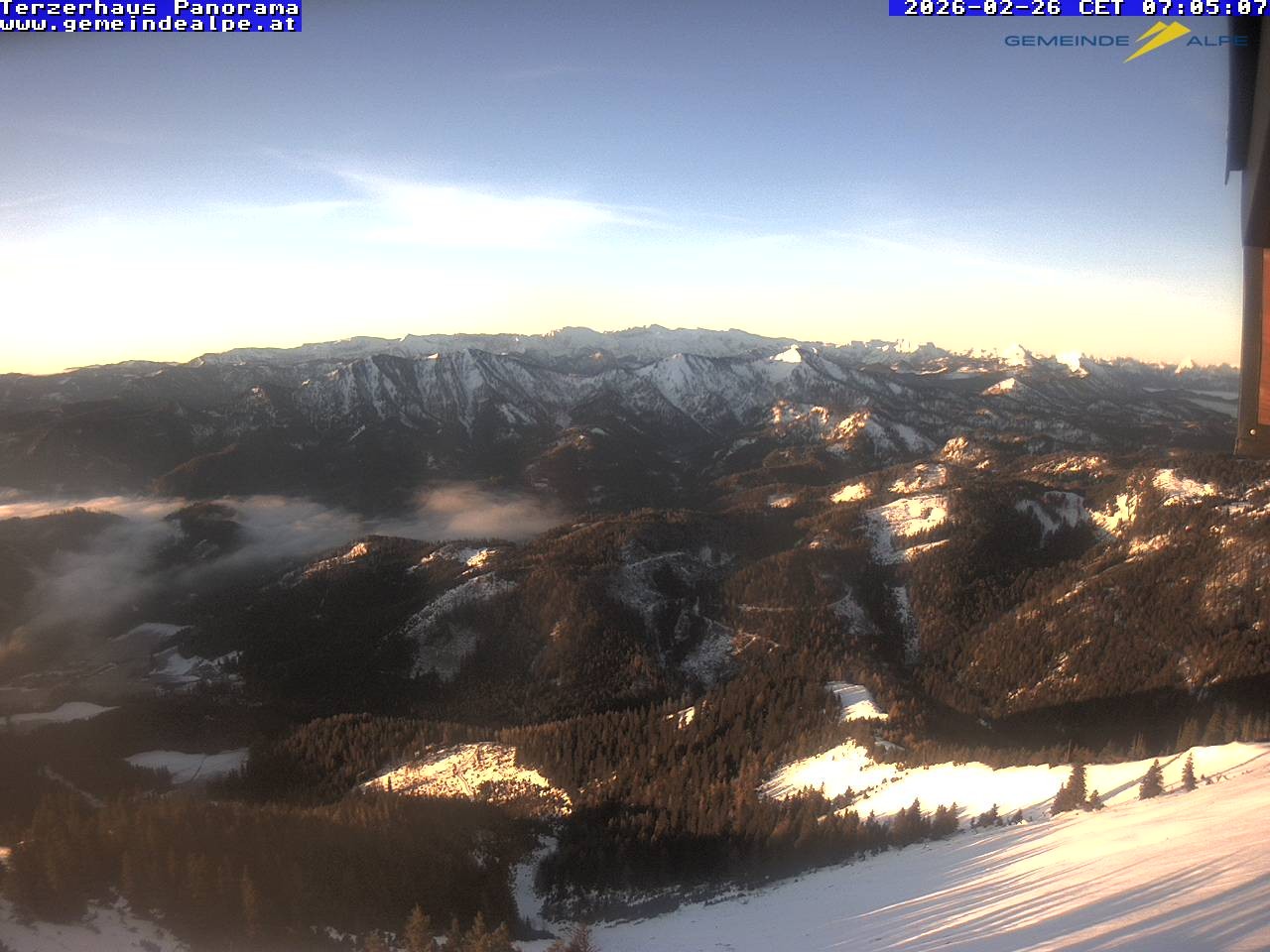 Archiviertes Webcam Bild: Skigebiet Gemeindealpe Mitterbach Panorama Terzerhaus am 26 Feb 2026 um 07:31 Uhr 06:00