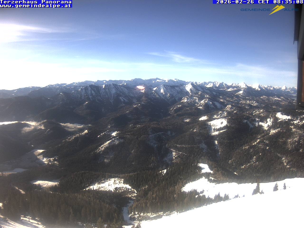 Archiviertes Webcam Bild: Skigebiet Gemeindealpe Mitterbach Panorama Terzerhaus am 26 Feb 2026 um 08:31 Uhr 07:00