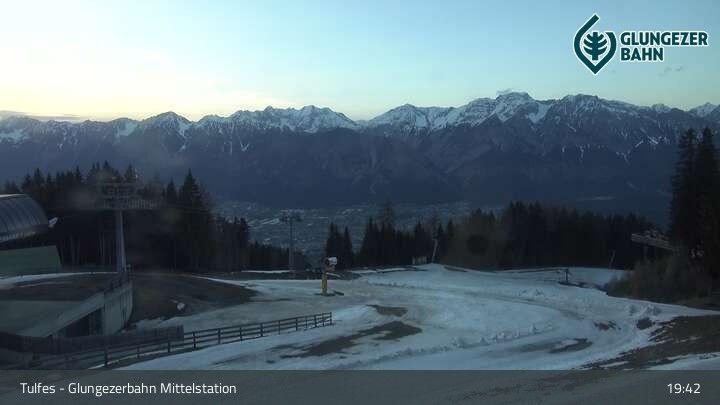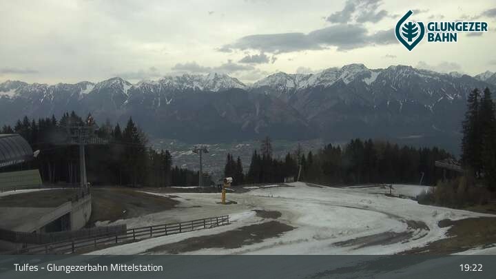 Archiviertes Webcam Bild: Tulfes: Mittelstation Glungezer Video-Webcam am 12.04.2026 um 19:09 Uhr Aktuell