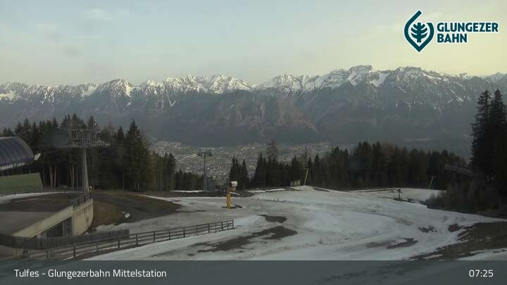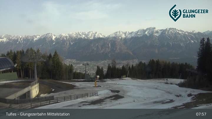 Archiviertes Webcam Bild: Tulfes: Mittelstation Glungezer Video-Webcam am 12.04.2026 um 07:09 Uhr 07:00