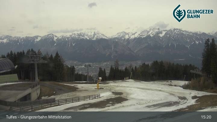 Archiviertes Webcam Bild: Tulfes: Mittelstation Glungezer Video-Webcam am 12.04.2026 um 15:09 Uhr 15:00