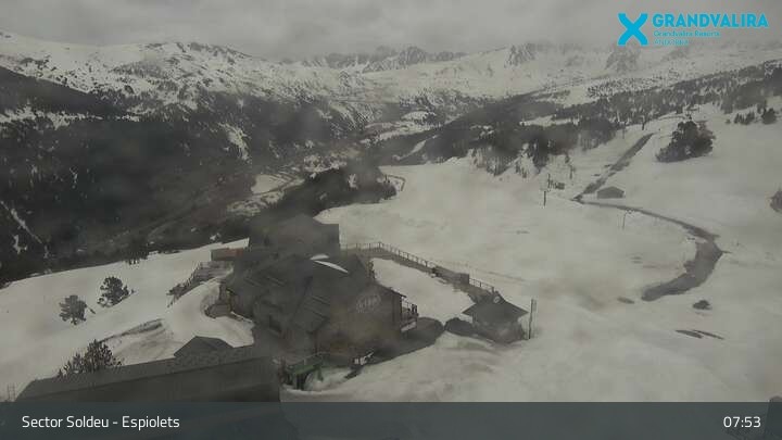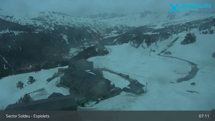 Archiviertes Webcam Bild: Grandvalira: Soldeu - Blick vom Espiolets am 12.04.2026 um 07:51 Uhr 07:00