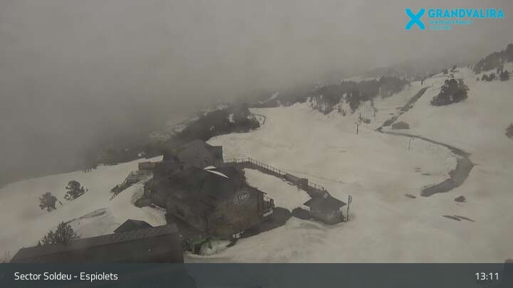 Archiviertes Webcam Bild: Grandvalira: Soldeu - Blick vom Espiolets am 12.04.2026 um 13:51 Uhr 13:00