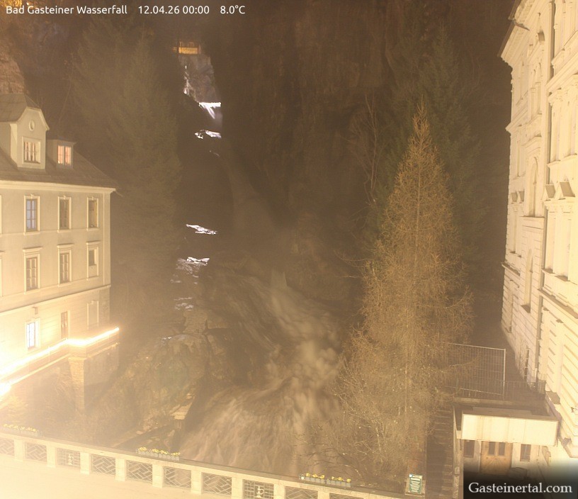 Archiviertes Webcam Bild: Bad Gastein: Wasserfall am 12.04.2026 um 02:01 Uhr 02:00