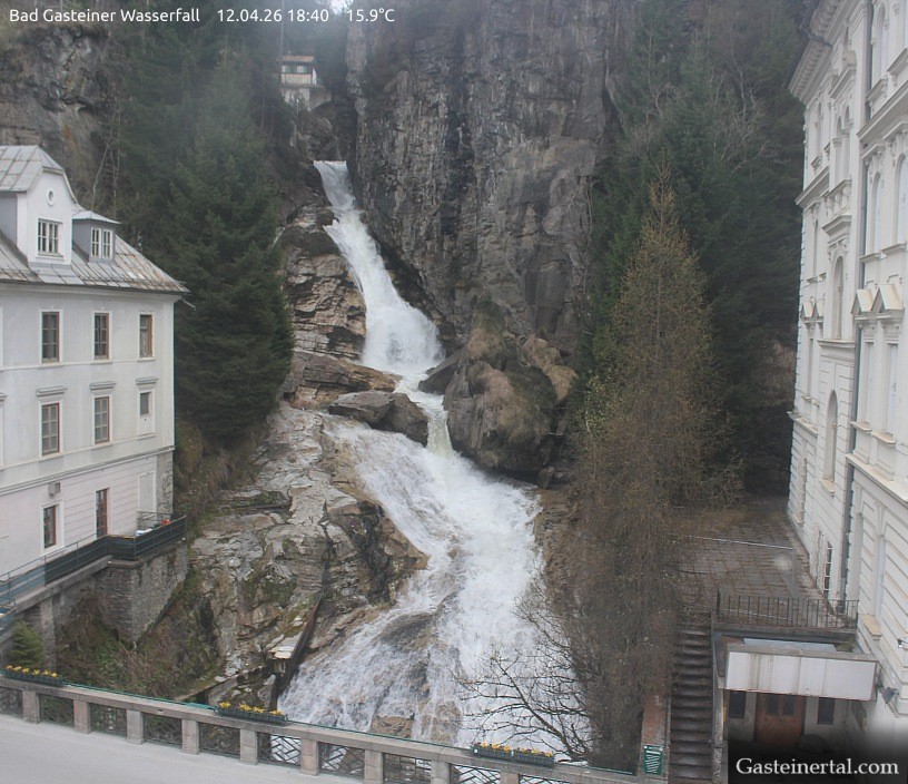 Archiviertes Webcam Bild: Bad Gastein: Wasserfall am 12.04.2026 um 18:01 Uhr 18:00