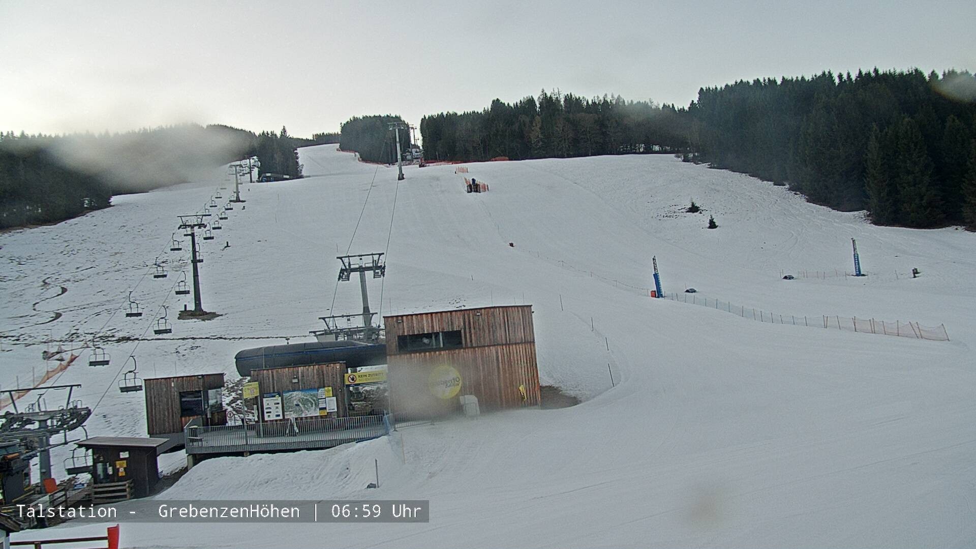 Archived webcam image showing Grebenzen Ski Resort: Chair Lift on 26 Feb 2026 at 07:05 06:00