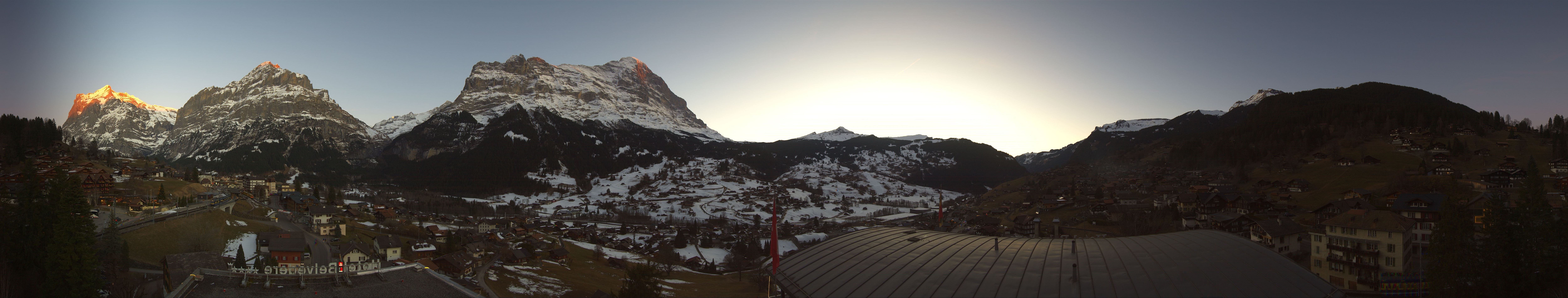 Archiviertes Webcam Bild: Grindelwald: Panoramablick vom Hotel Belvedere am 26 Feb 2026 um 18:47 Uhr Aktuell