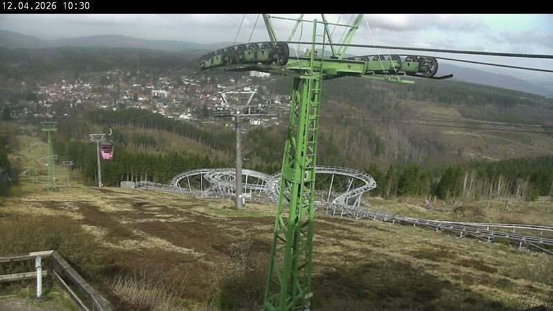 Hahnenklee Bocksberg: Blick von der Bergstation der Kabinenbahn. Im Hintergrund ist auch der Sessellift zu sehen.