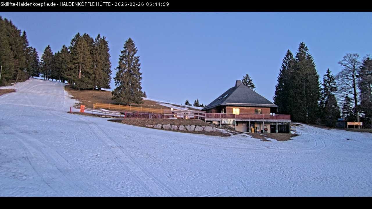 Archived webcam image showing Base station Haldenköpfle - Mountain hut on 26 Feb 2026 at 06:12 05:00