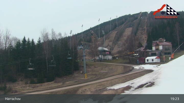 Archiviertes Webcam Bild: Harrachov: Skipiste und Skisprunganlage am Teufelsberg am 12.04.2026 um 19:57 Uhr Aktuell