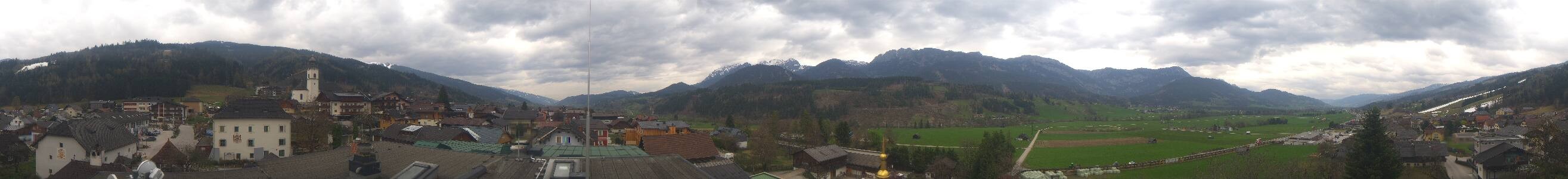 Die 360 Grad-Kamera eröffnet den Blick auf den Ort Haus im Ennstal in der Steiermark. Im Hintergrund sind bei guten Wetterverhältnissen unter anderem die Gipfel folgender Berge zu erkennen: Stoderzinken (2.048 m), Kammspitz (2.139 m), Hauser Kaibling (2.015 m), Planai (1.906 m) und Luserwand (2.135 m).
