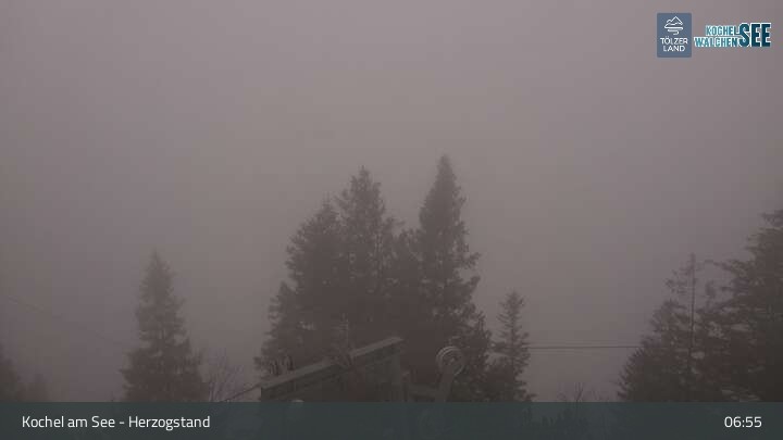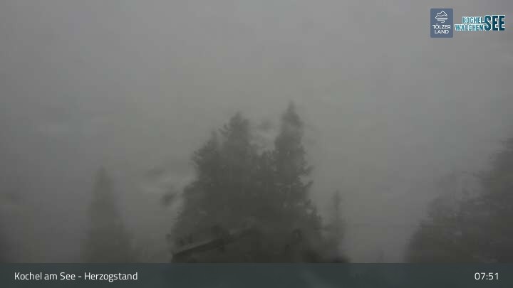 Archiviertes Webcam Bild: Blick vom Herzogstand auf den Kochelsee am 12.04.2026 um 07:49 Uhr 07:00