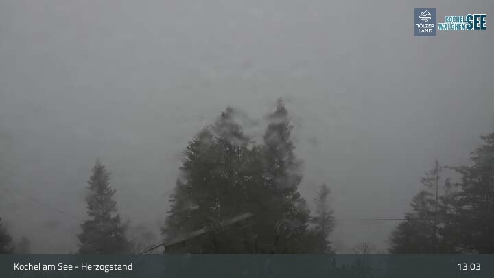 Archiviertes Webcam Bild: Blick vom Herzogstand auf den Kochelsee am 12.04.2026 um 13:49 Uhr 13:00