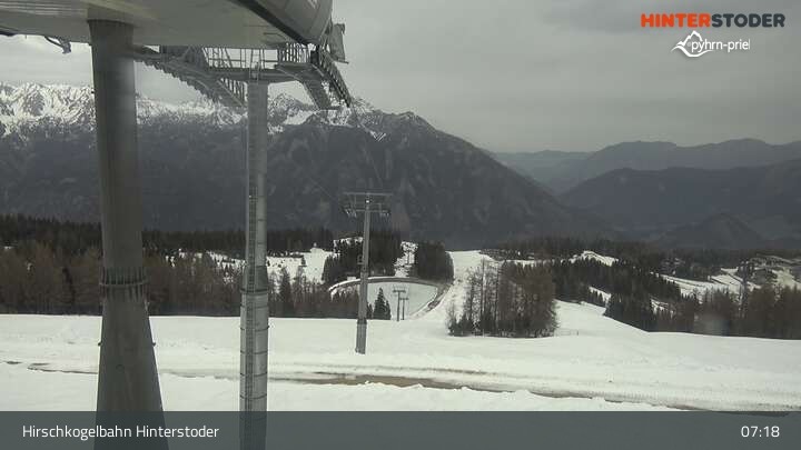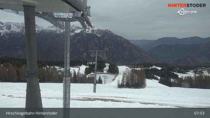 Archiviertes Webcam Bild: Hinterstoder: Bergstation Hirschkogelbahn am 12.04.2026 um 07:45 Uhr 07:00