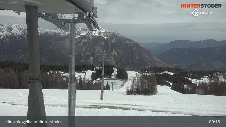 Archiviertes Webcam Bild: Hinterstoder: Bergstation Hirschkogelbahn am 12.04.2026 um 09:45 Uhr 09:00