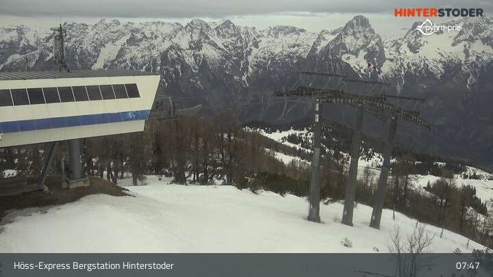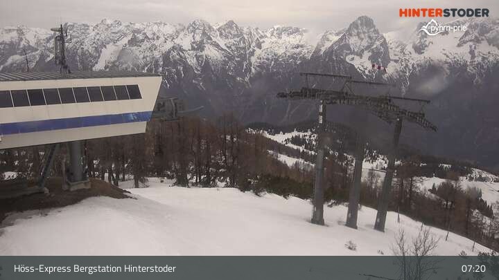 Archiviertes Webcam Bild: Hinterstoder: Höss-Express Bergstation am 12.04.2026 um 07:46 Uhr 07:00