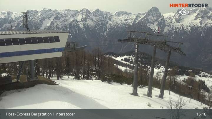 Archiviertes Webcam Bild: Hinterstoder: Höss-Express Bergstation am 12.04.2026 um 15:46 Uhr 15:00