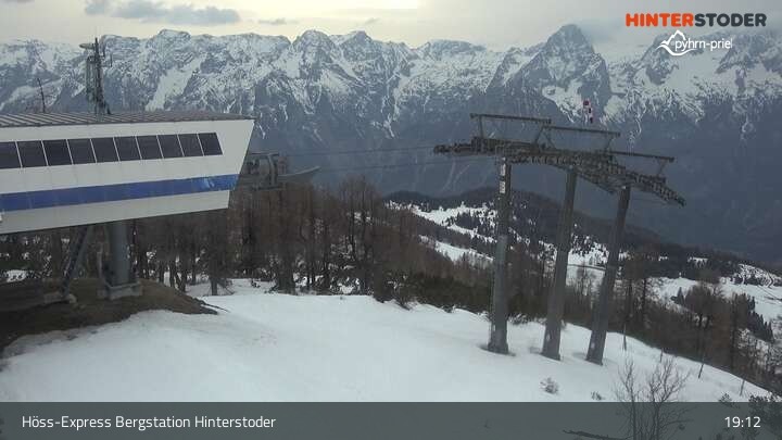 Archiviertes Webcam Bild: Hinterstoder: Höss-Express Bergstation am 12.04.2026 um 19:46 Uhr Aktuell