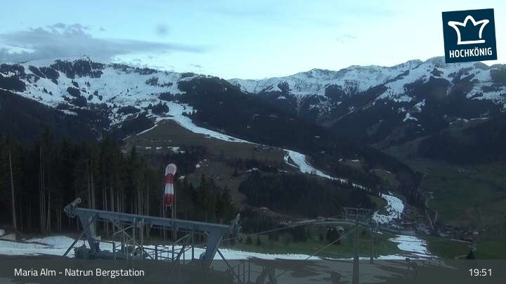 Archiviertes Webcam Bild: Hochkönig Maria Alm: Natrun Bergstation am 12.04.2026 um 19:02 Uhr Aktuell