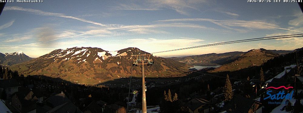 Archiviertes Webcam Bild: Sattel-Hochstuckli: Ausblick Mostelberg am 26 Feb 2026 um 07:46 Uhr 06:00