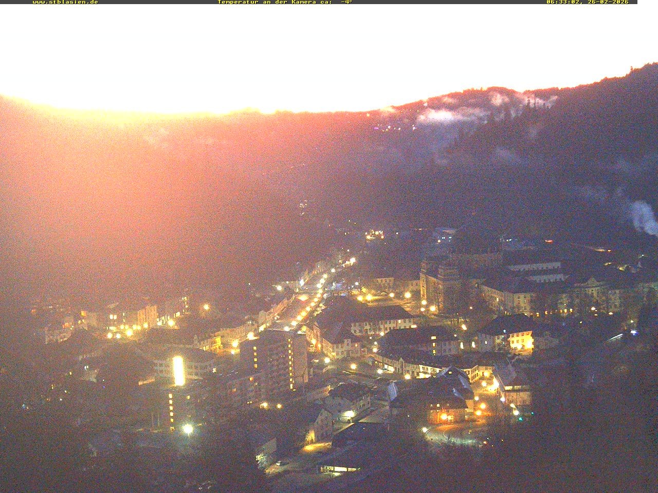Archiviertes Webcam Bild: St. Blasien im Schwarzwald: Blick vom Weißensteinkreuz am 26 Feb 2026 um 04:43 Uhr 03:00