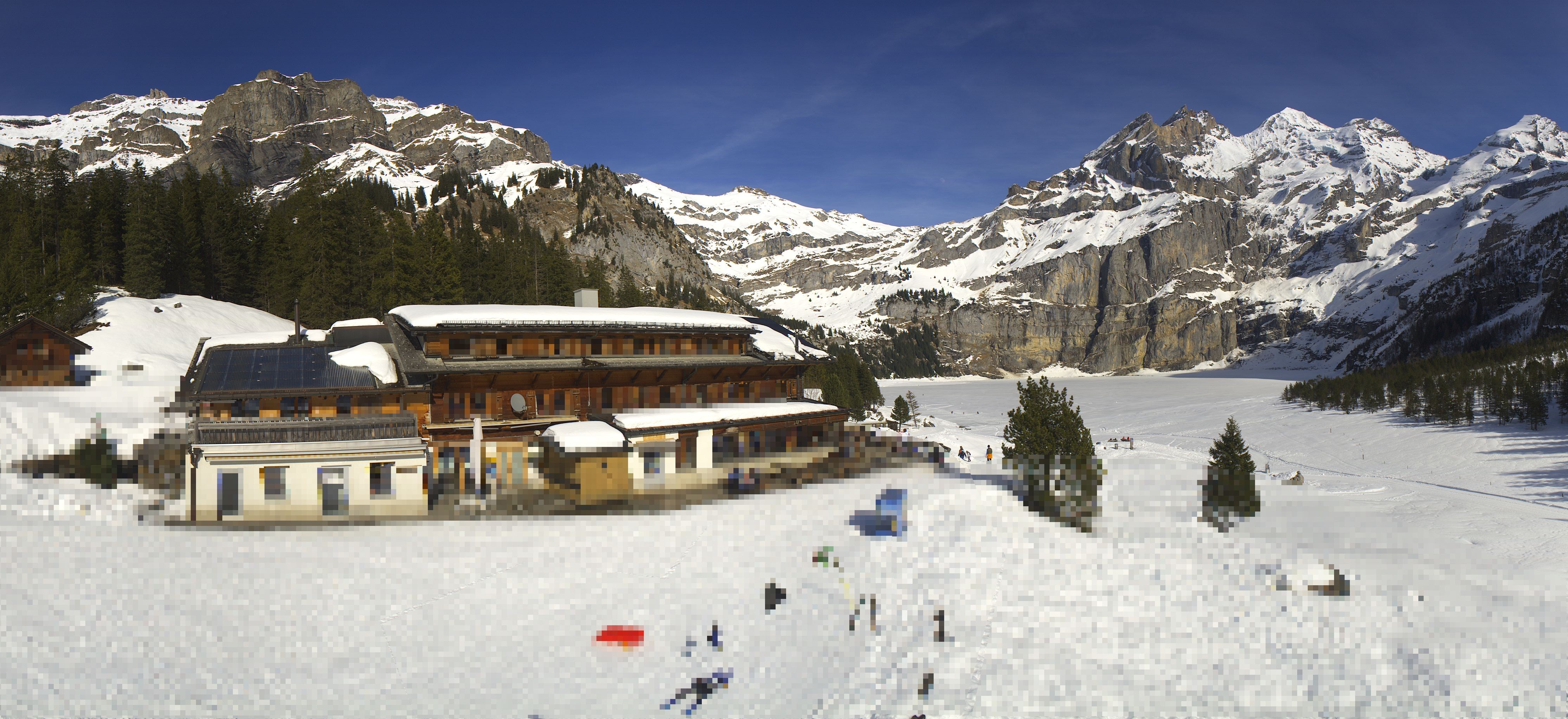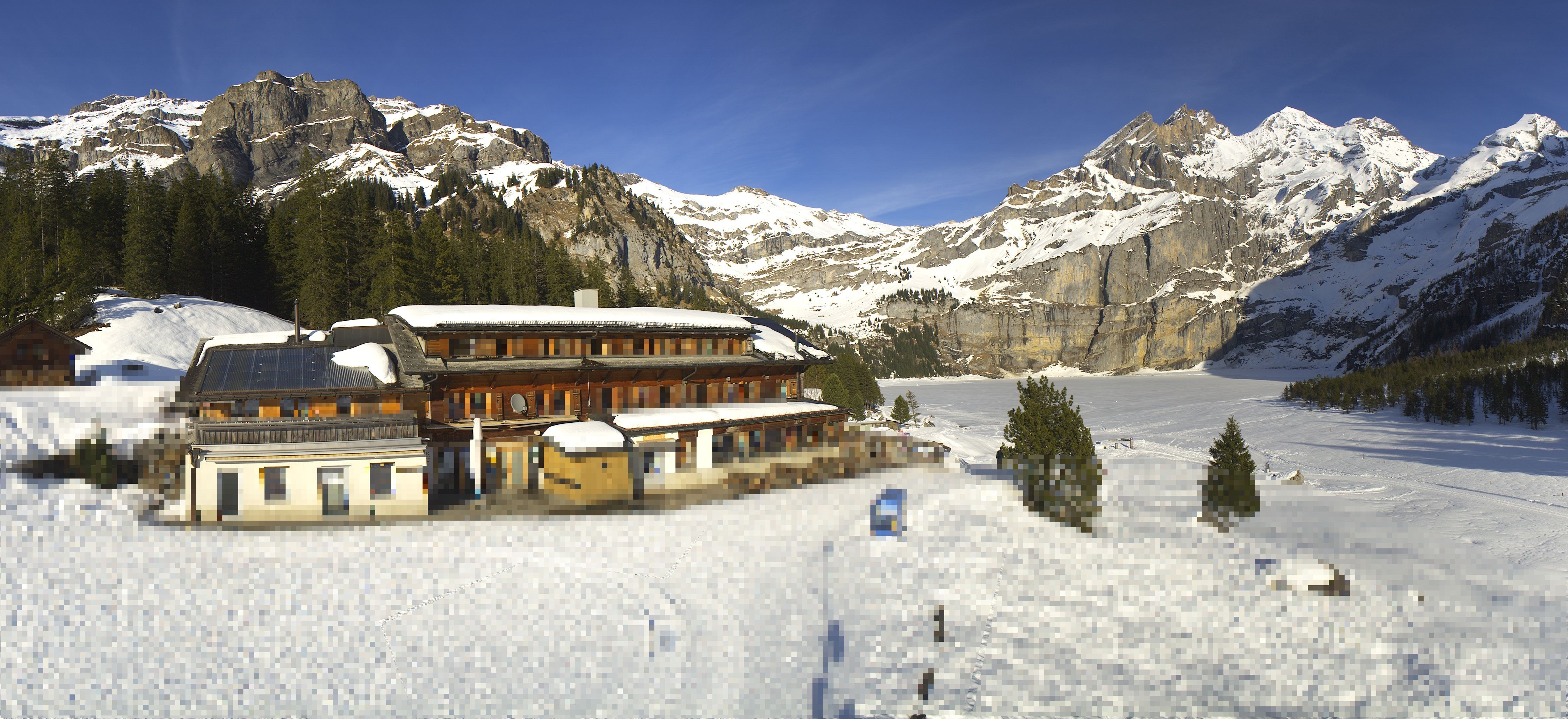 Archiviertes Webcam Bild: Kandersteg: Oeschinensee und Berghotel am 26 Feb 2026 um 16:08 Uhr Aktuell