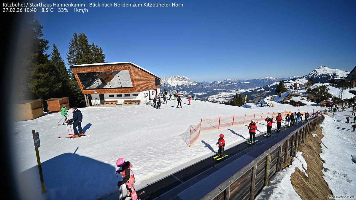 Blick auf das Starthaus der Hahnenkammrennen in Kitzbühel. Hier an der Bergstation Hahnenkamm startet die legendäre Weltcupabfahrt auf der Streif.