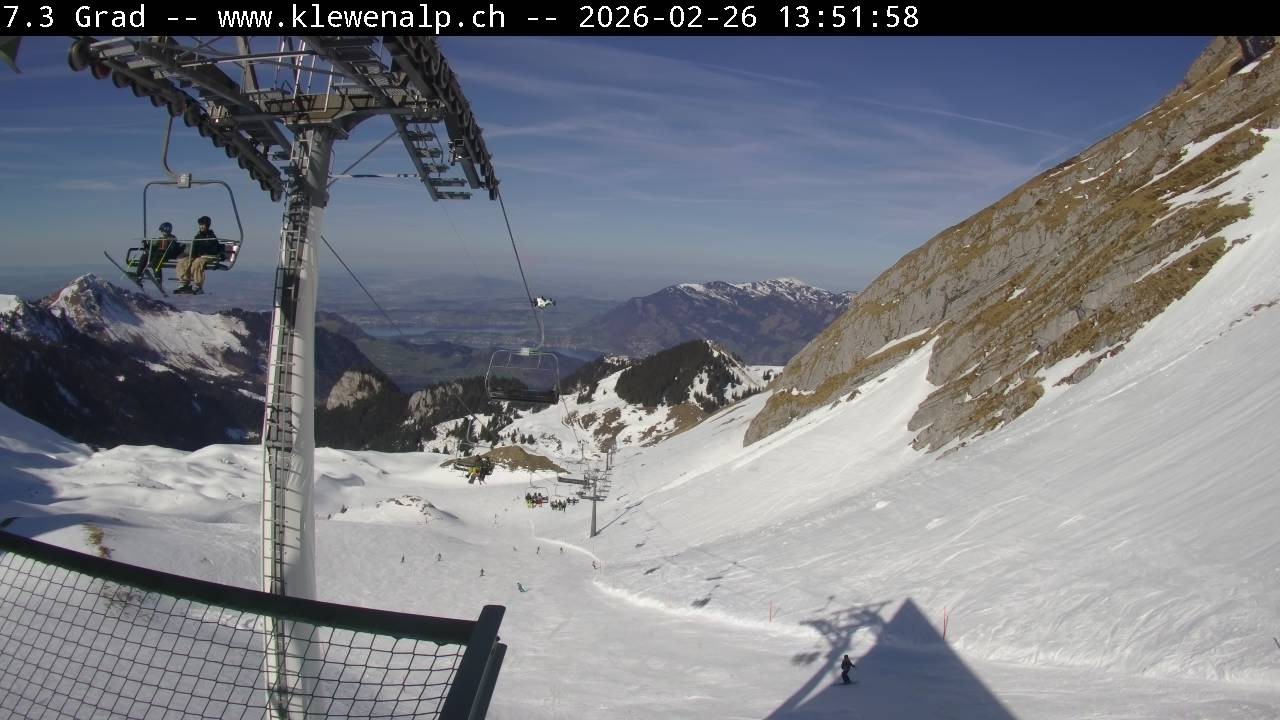 Archived webcam image showing Top station Klewenalp on 26 Feb 2026 at 14:43 13:00
