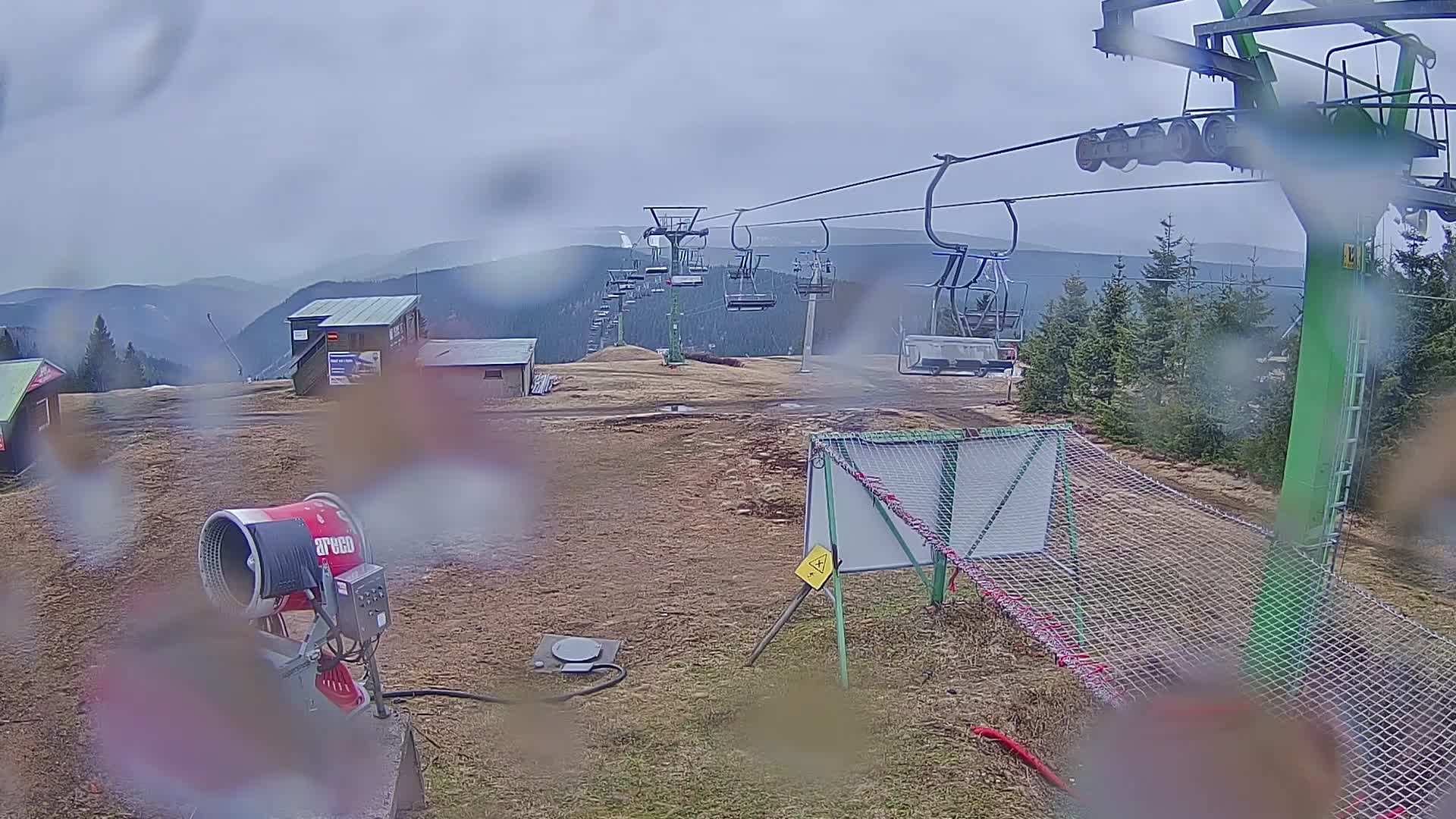 Archiviertes Webcam Bild: Klinovec: Skiareal Neklid am 12.04.2026 um 10:01 Uhr 10:00