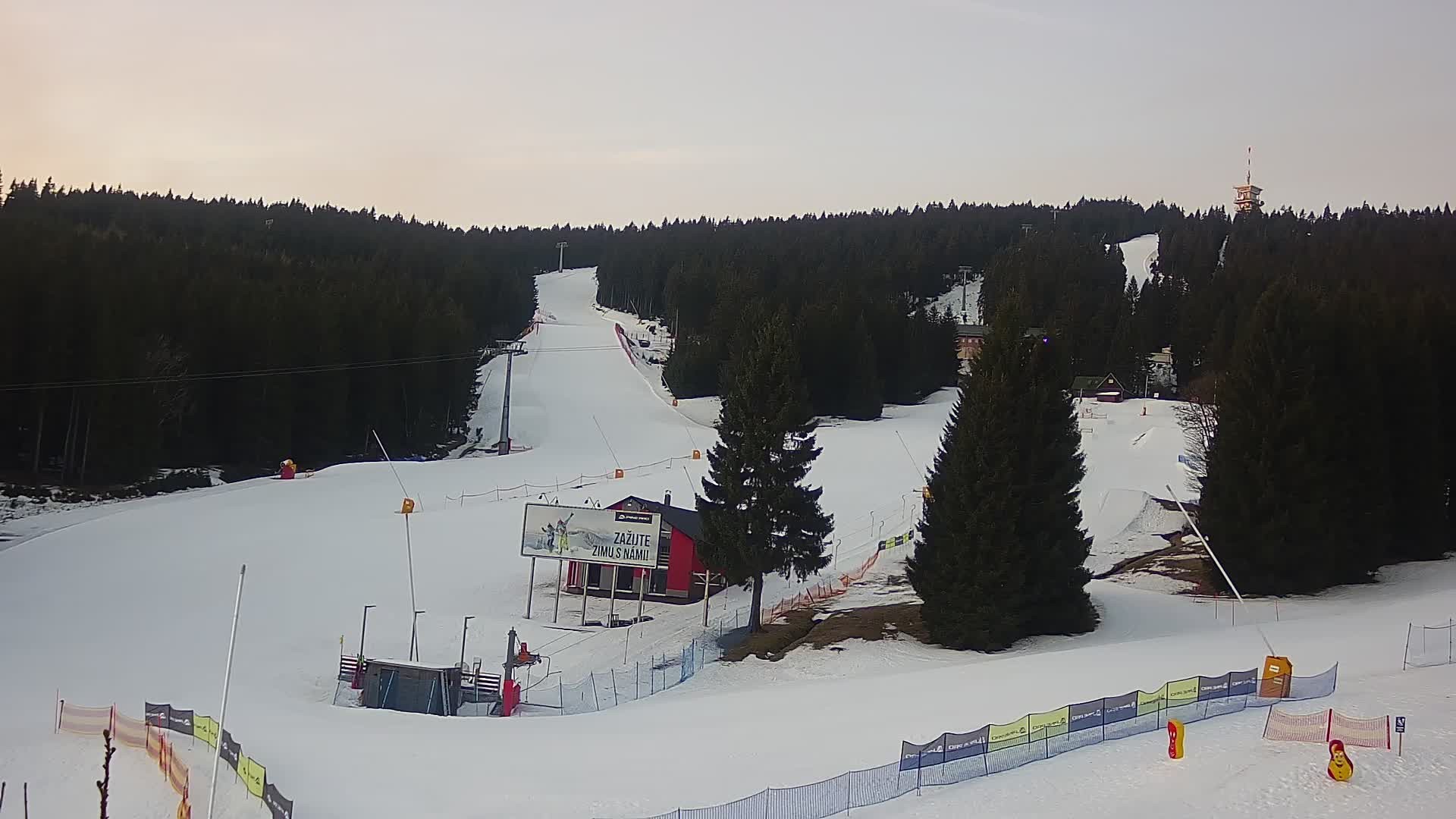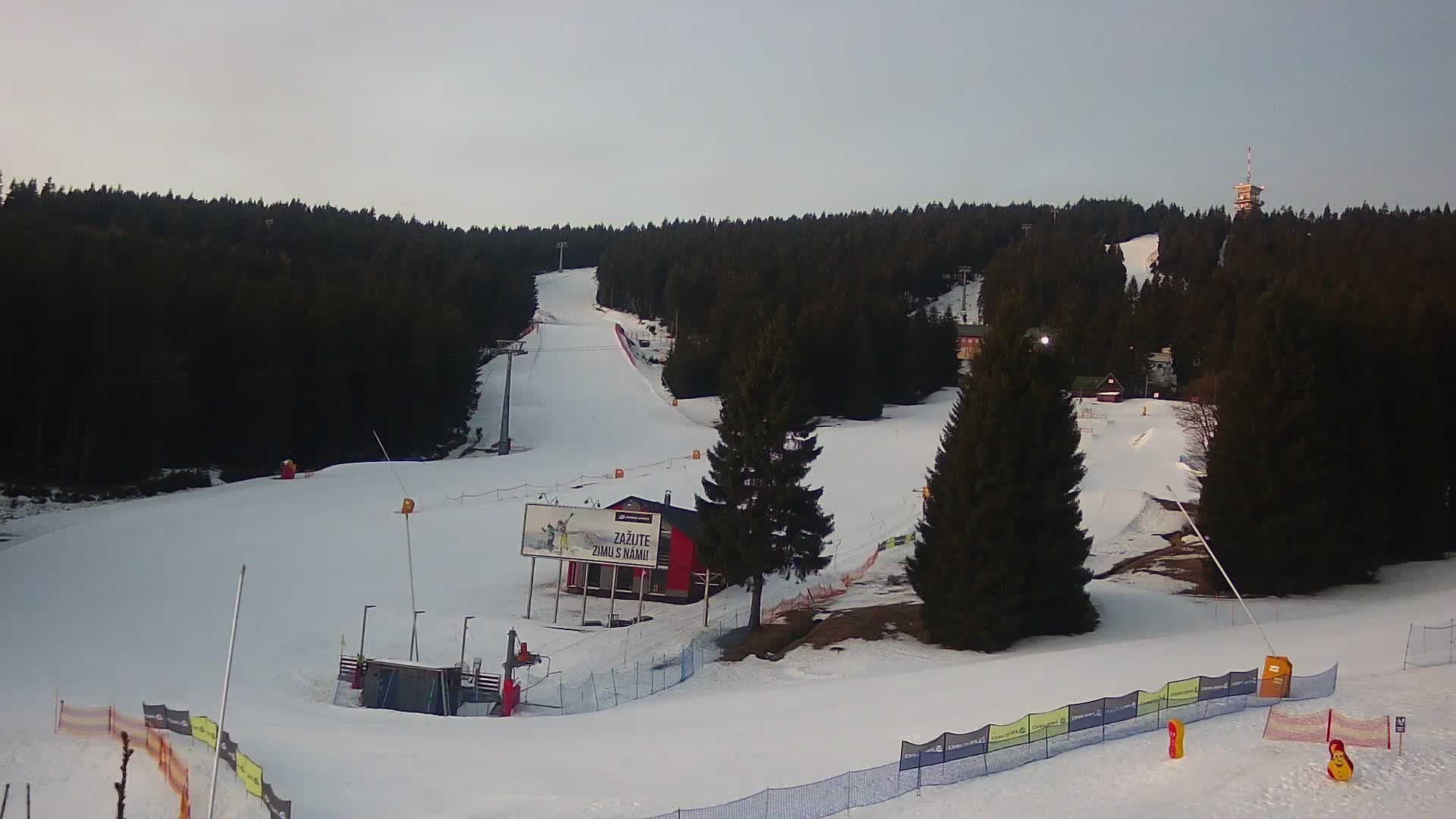 Archiviertes Webcam Bild: Skischulgelände in Klinovec am 26 Feb 2026 um 07:11 Uhr 06:00