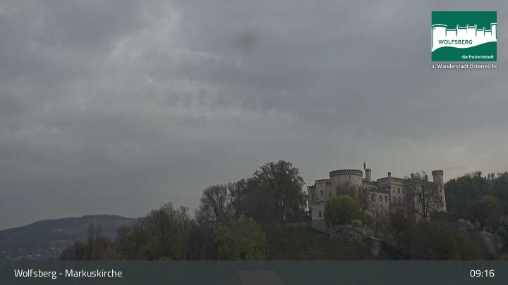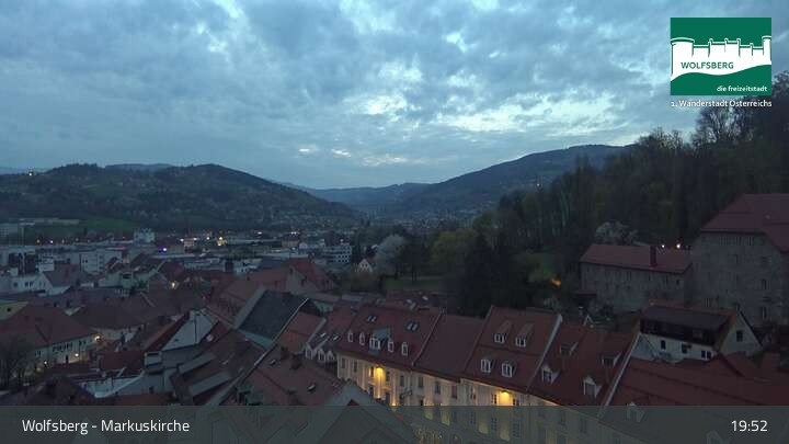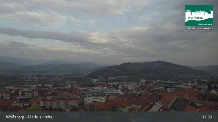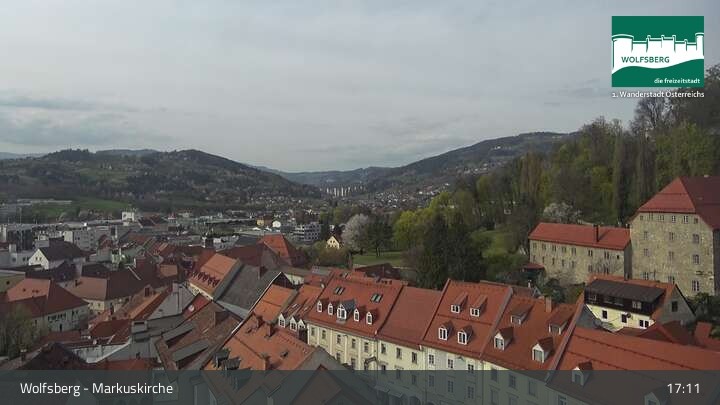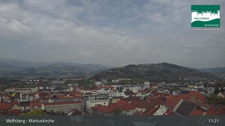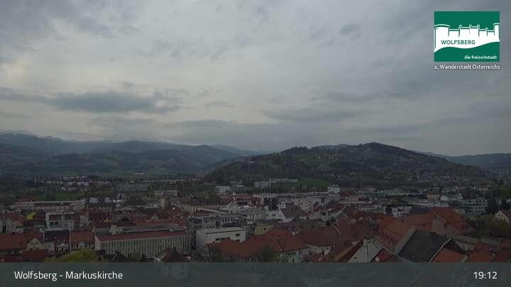 Die Webcam eröffnet die Sicht von der Markuskirche auf die Kärntner Ortschaft Wolfsberg im Lavanttal. Zu sehen ist unter anderem die Altstadt sowie das Schloss Wolfsberg.