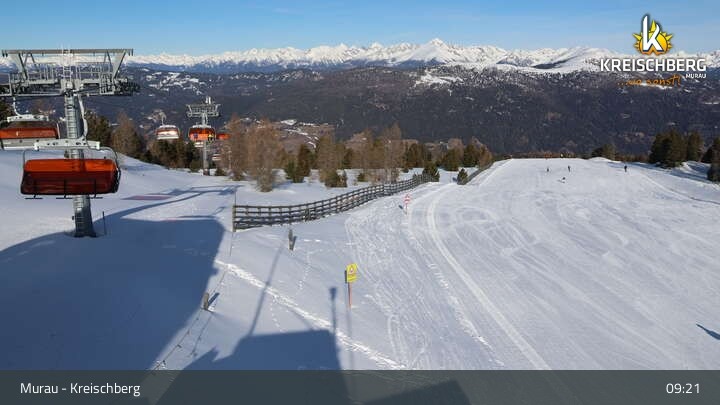 Diese Webcam im Skigebiet Kreischberg steht an der Bergstation der Sesselbahn Sixpack.