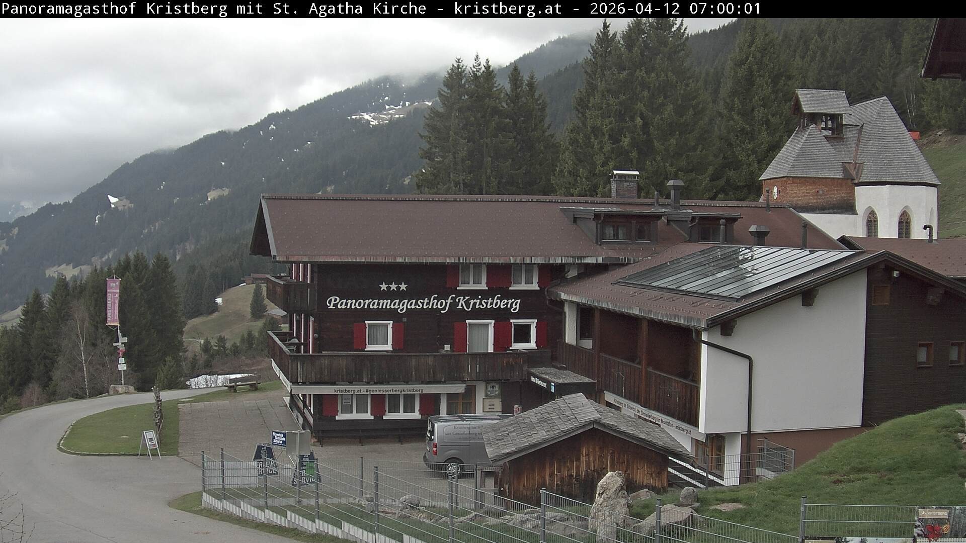 Die Webcam eröffnet den Blick auf den Panoramagasthof Kristberg im Skigebiet Kristberg-Silbertal. Hinter dem Gasthof befindet sich die St. Agatha Bergknappen-Kapelle. Zu sehen ist außerdem die Rätikongebirgsgruppe mit der Zima.